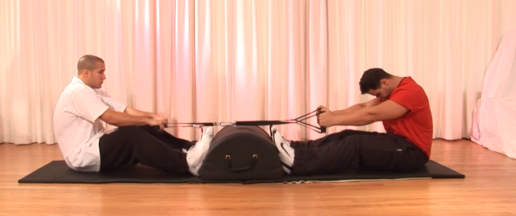 Creating higher levels of resistance for fitness routines, without a weight machine, is as simple as adding a stabile object between the interactive fitness participants, a Stabilizer (footrest).