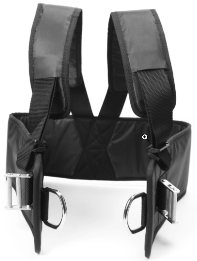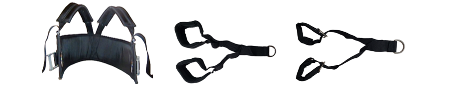 The Harness has multiple funtions. The harness is design for those with limited abilities to use traditionale handles, off-balance routines or for lower body only routines.