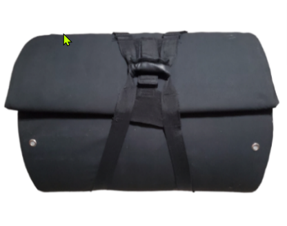 The indoor “stabilizer” is a padded covered foam footrest with detachable mats and carrier.